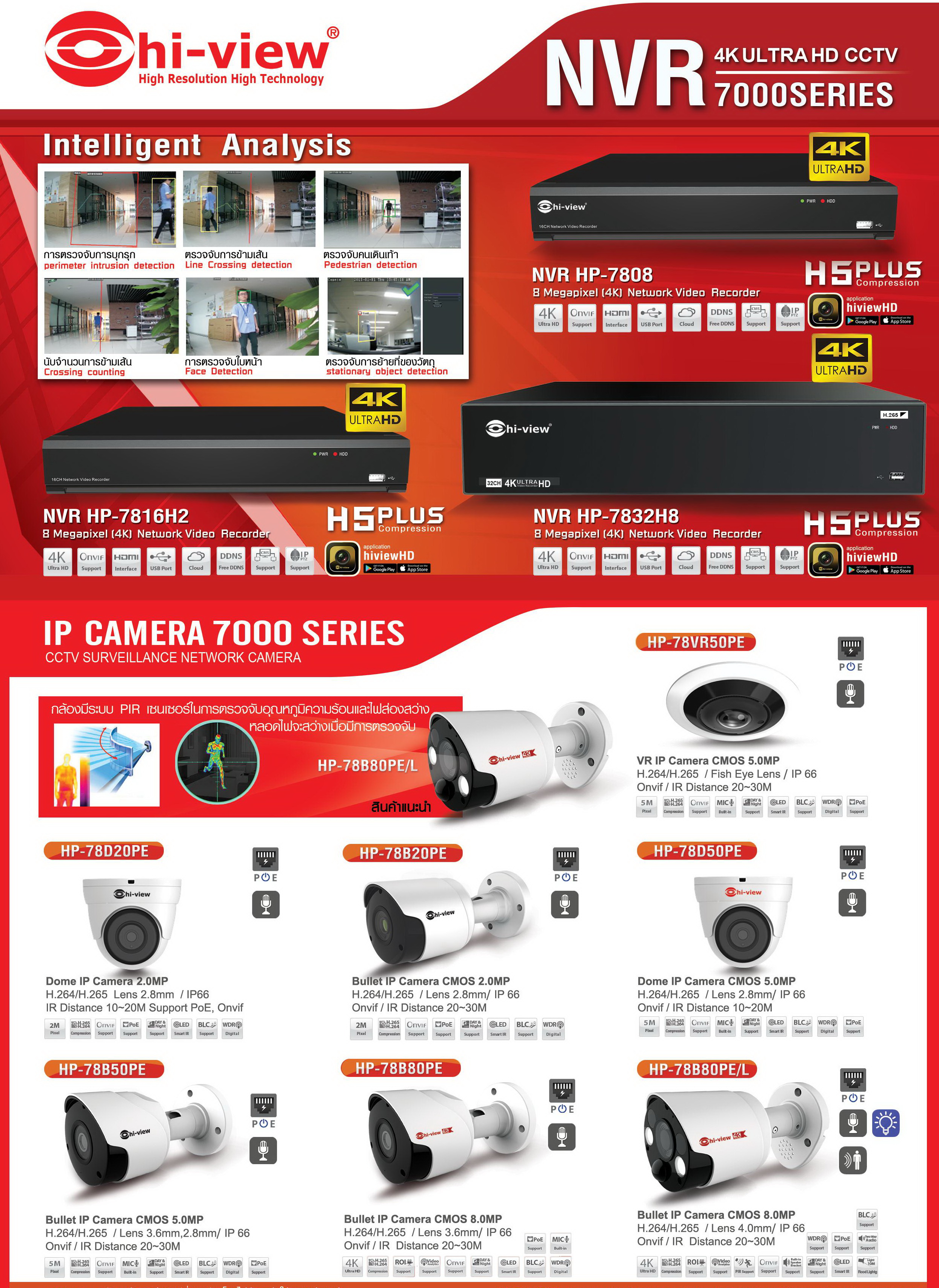-กล้อง HIVIEW IP CAMERA พร้อม เครื่องบันทึก NVR รองรับ ความละเอียด 2MP 4Mp. 5MP. 8MP 4K.